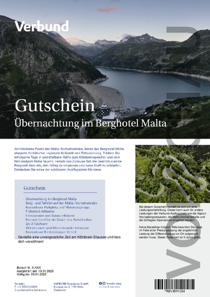 Genießen Sie erholsame Tage im Berghotel Malta an der Malta Hochalmstraße. Umgeben von der atemberaubenden Bergwelt des Nationalparks Hohe Tauern und dem Kölnbreinspeicher erleben Sie Entspannung pur. Wellness, regionale Kulinarik, Wandern und eine Auszeit in den Bergen lassen den Alltag schnell vergessen.